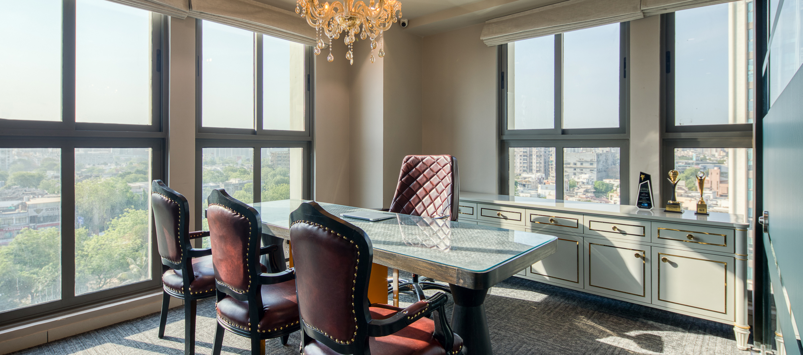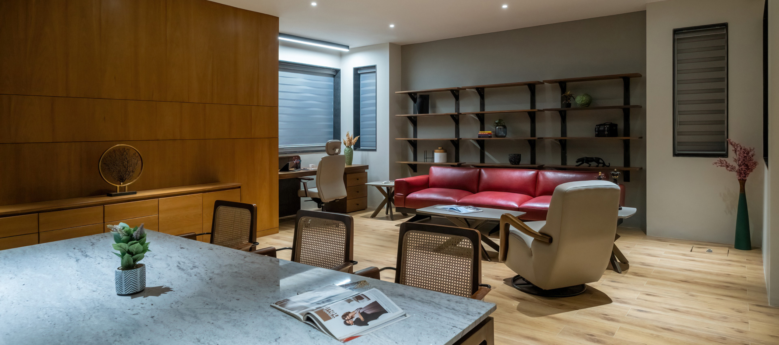 Executive Workspaces: We redefine professional environments. Whether it’s the Sabyasachi wallpaper and golden-bordered royalty of Dr. Detox or the rustic-polished veneer of JP Associates, we design offices that command respect.